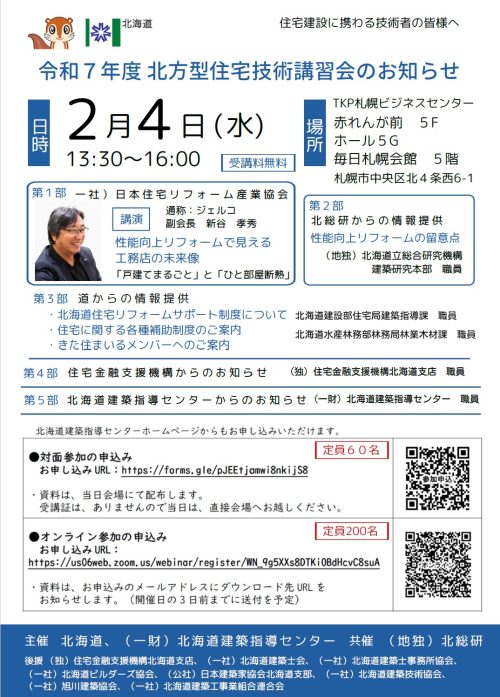 北方型住宅技術講習会という場面で TKP札幌ビジネスセンターでセミナー登壇します